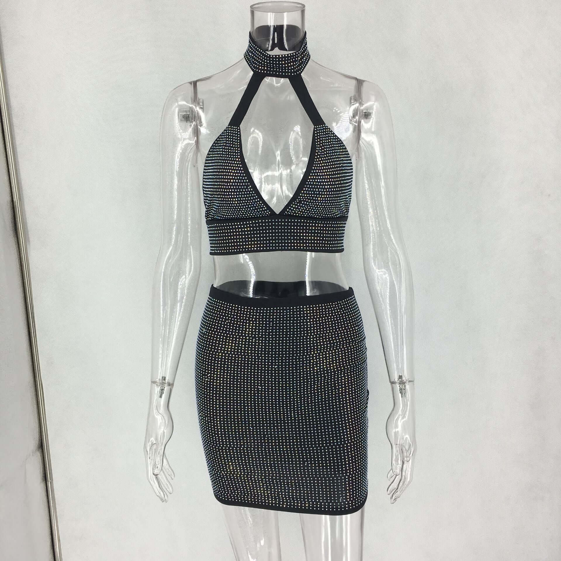 Halter Diamond Skirt Top set
